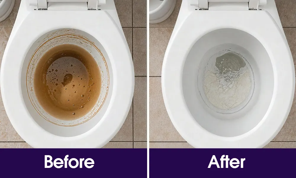 Within minutes, the foam expanded fully upward and clung to the sides instead of sliding down. By the five minute mark, I could visibly see the mineral ring softening. After flushing, there was no film. No chalky residue. No chemical cloud. Just a clean bowl.