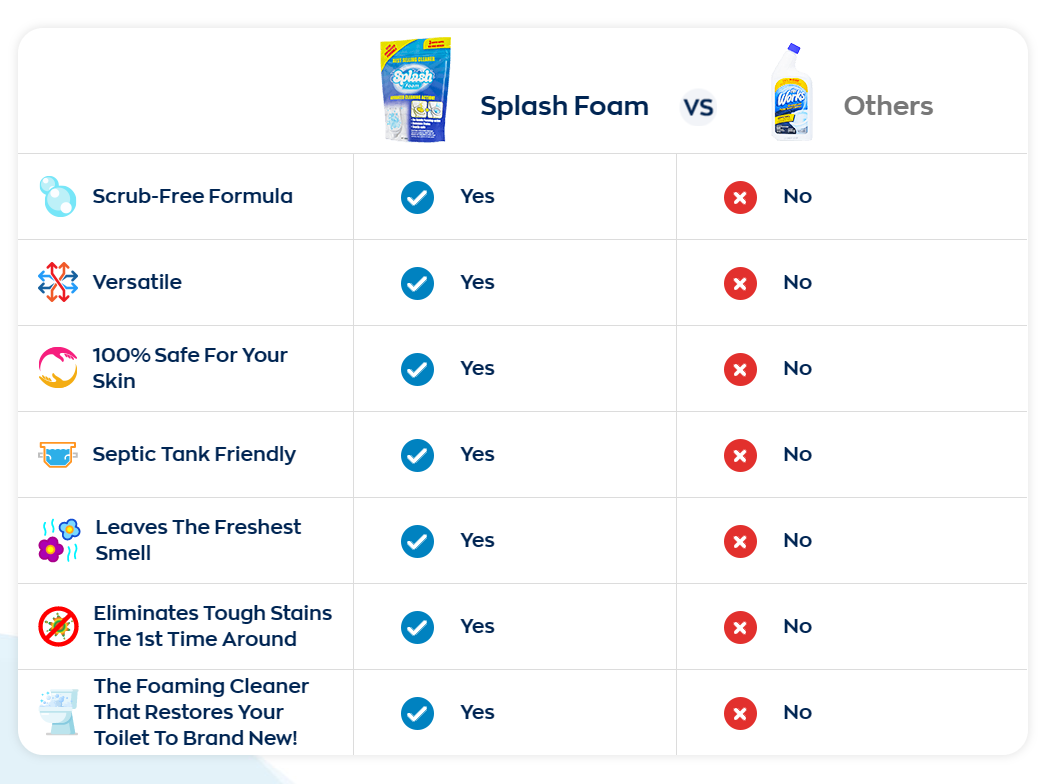 ✅ Time and Effort Saver: Splash Foam frees up your time by simplifying your cleaning routine. Just pour, let it foam, and flush! No extra tools, brushes, or strenuous scrubbing required!